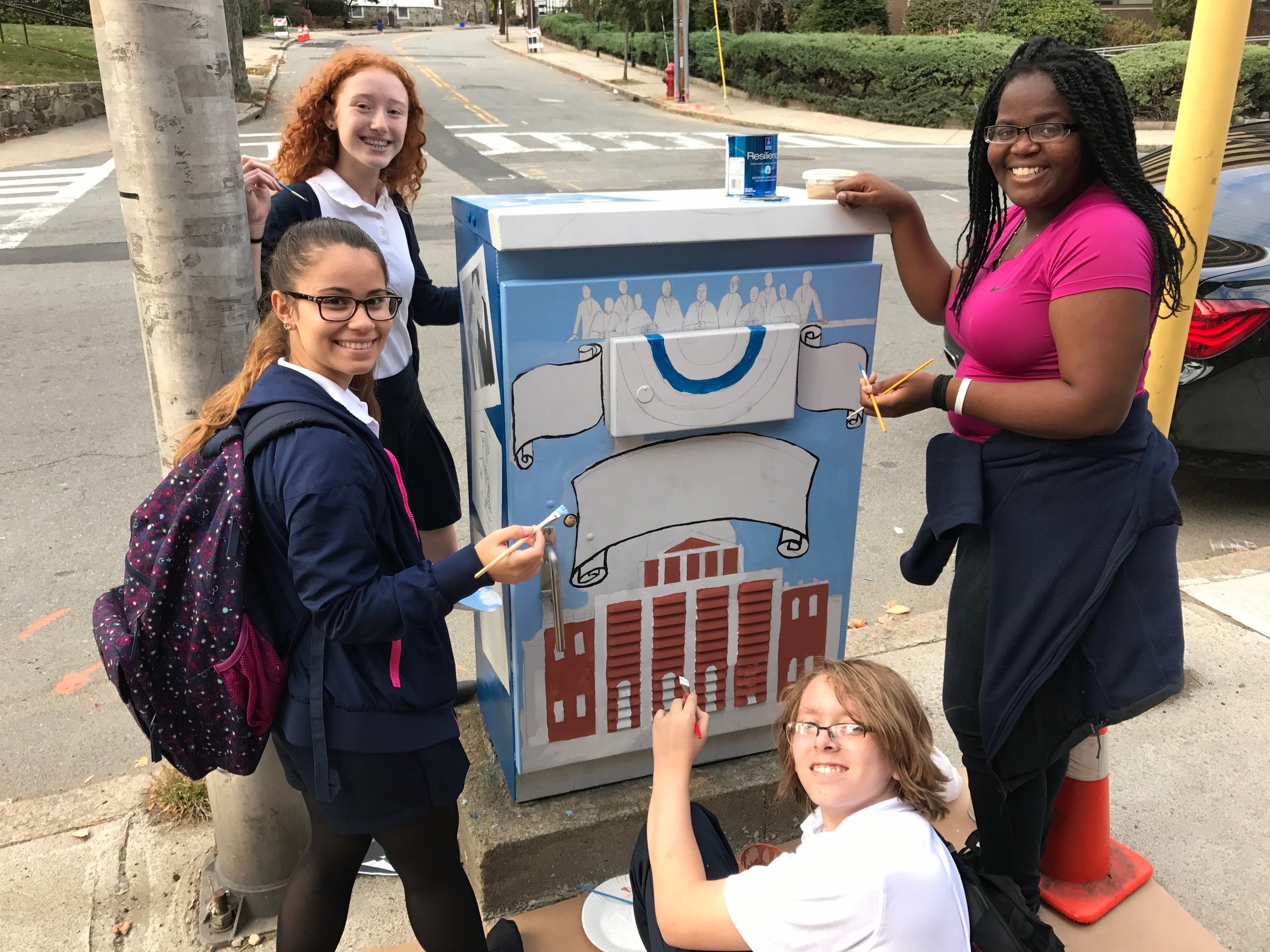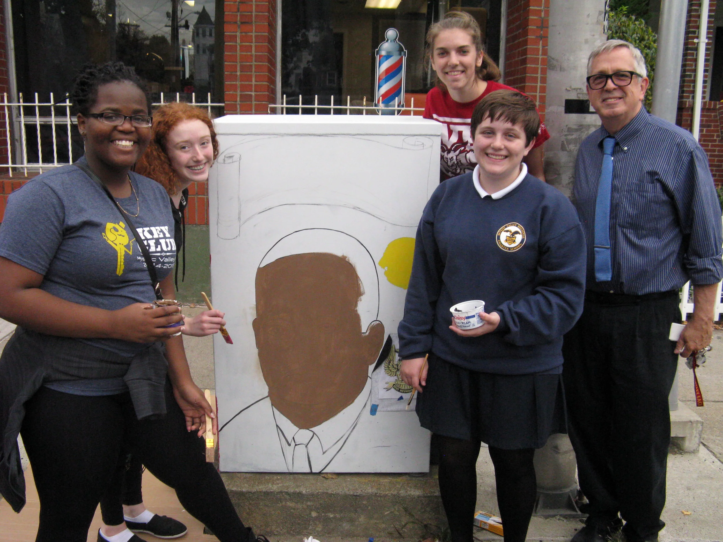 The Mystic Valley art club paints a switch-box in honor of Malden City Council's first African American member, Herbert L. Jackson.
