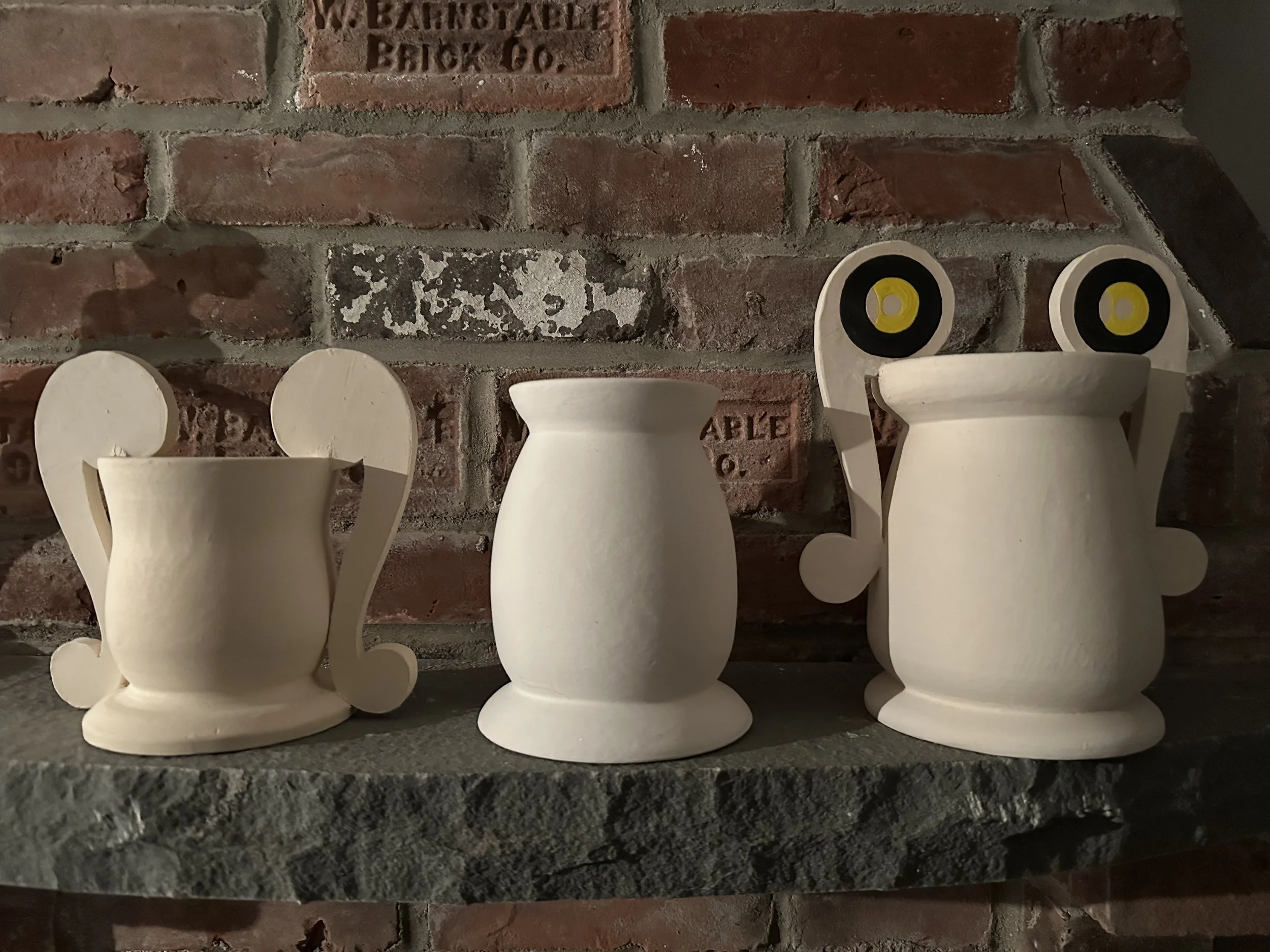 The photo below shows Ann Hamilton's two painted vessels with images of farm animals. They are stunning. Ray Duval was showing us different ways to apply the surface treatments.